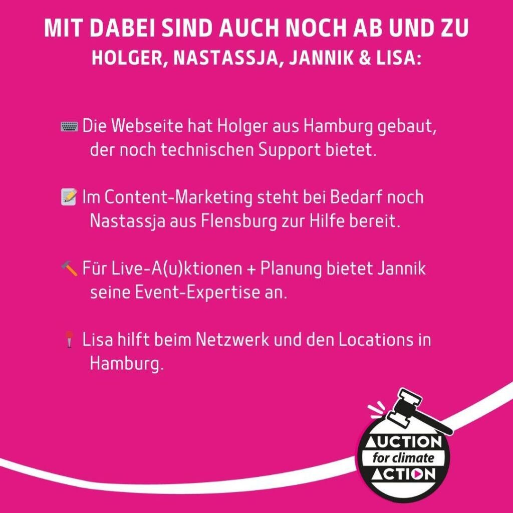 Initiator & execution: Nicole, Hamburg, via web, Instagram, Facebook, LinkedIn, via info@auctionforclimateaction.org & @auctionforclimateaction